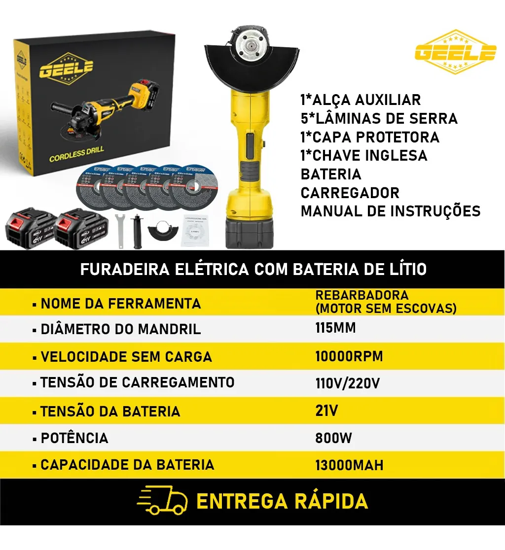 O moedor GEELE é uma ferramenta versátil que permite que você execute diferentes trabalhos com um acabamento profissional. Portanto, é uma excelente opção para adicioná-lo à sua oficina ou caixa de ferramentas.