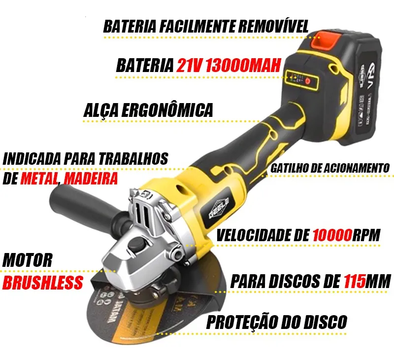 Esmerilhadeira angular sem fio e sem escovas