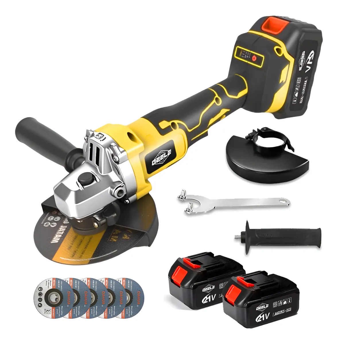 Motor sem escovas: o motor de alta potência tem alta eficiência e grande praticidade. O motor sem escovas da esmerilhadeira angular de 21 V fornece até 11000 RPM para uma ampla gama de aplicações, incluindo corte, polimento e retificação de metal, tijolo, azulejo e madeira. O motor sem escovas de alta potência de 800 W oferece maior vida útil, maior motivação, menos perda de energia da bateria, menor ruído operacional da máquina e condições de trabalho muito mais seguras.