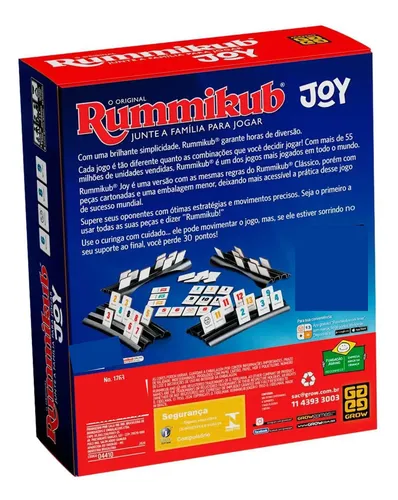 Rummikub Joy é perfeito para jogadores de 7 anos em diante, suportando de 2 a 4 participantes por partida. É uma excelente maneira de desenvolver habilidades cognitivas como concentração, planejamento estratégico e raciocínio rápido. Além disso, é uma ótima opção para momentos de lazer em casa ou como atividade recreativa em diferentes ambientes.