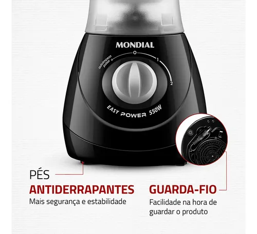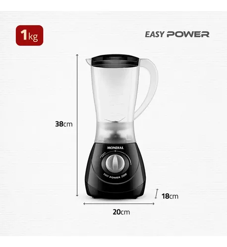 O Liquidificador Easy Power 1,9 L 550 W Preto Mondial é a solução ideal para quem busca eficiência e praticidade na cozinha. Com um potente motor de 550 W, ele oferece duas velocidades que permitem preparar desde smoothies a sopas cremosas com facilidade. Sua jarra de plástico tem uma capacidade total de 1,9 L, permitindo preparar porções generosas para toda a família.