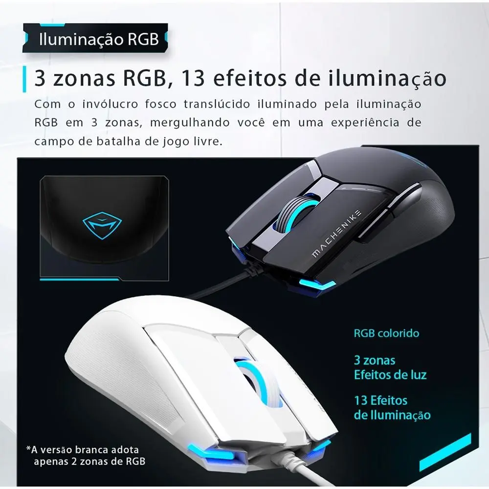 Mouse gamer Machenike M7 Pro A escolha perfeita para quem busca um mouse com desempenho superior e conforto para as longas sessões de jogo. Com um design ergonômico e um sensor óptico de 12800 DPI, o M7 Pro oferece precisão e controle incomparáveis. Design Projetado para proporcionar conforto e ergonomia durante as longas sessões de jogo. O mouse possui um formato ambidestro, com laterais texturizadas para melhorar o grip. O peso do mouse também é ajustável, para que você possa encontrar o equilíbrio perfeito para o seu estilo de jogo. Sensor Óptico Com 12800 DPI do M7 Pro oferece precisão e controle incomparáveis. Com uma taxa de atualização de 1000 Hz, o mouse responde instantaneamente aos seus movimentos. O M7 Pro também possui 6 botões programáveis, para que você possa personalizar o mouse de acordo com suas necessidades.