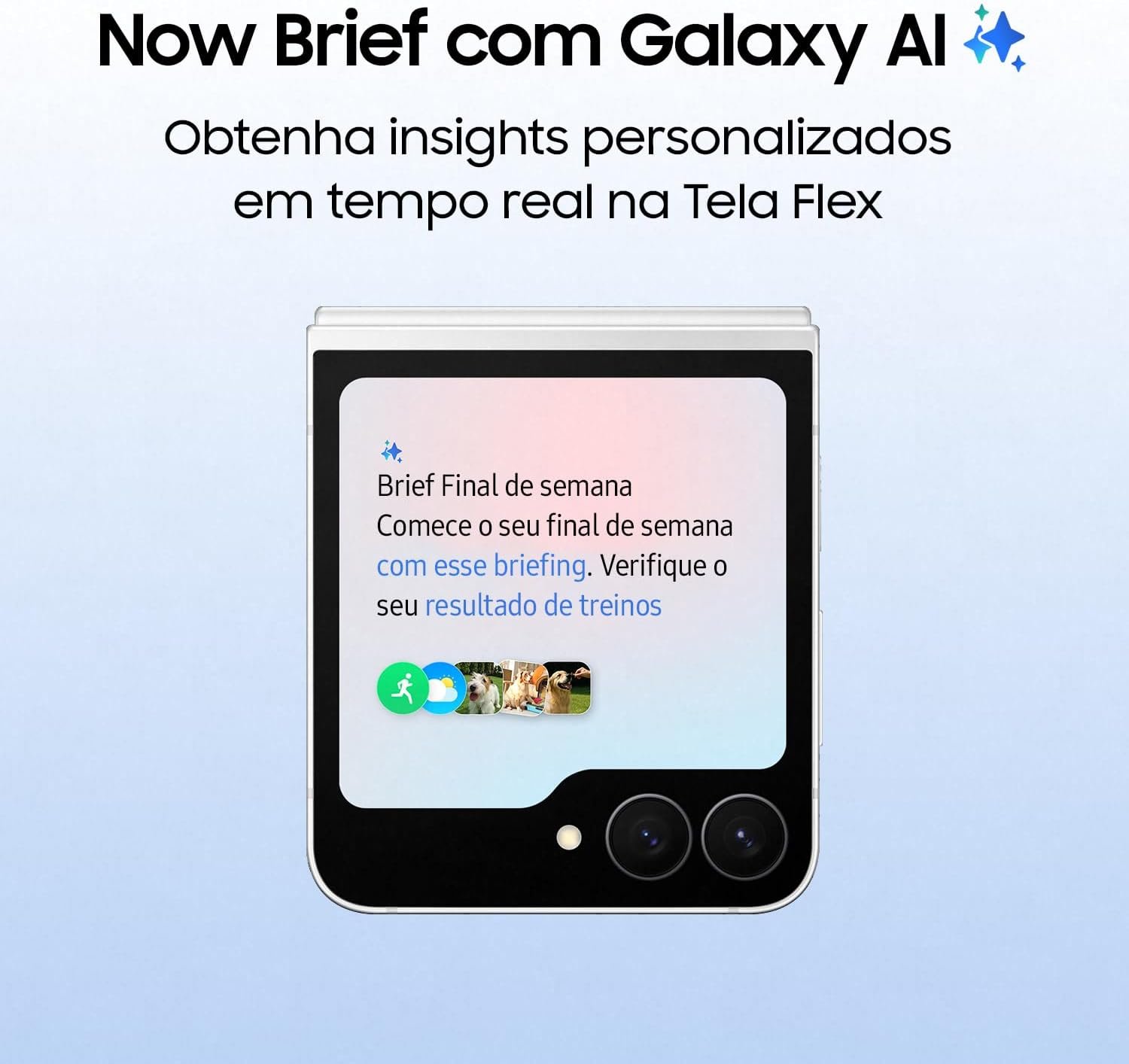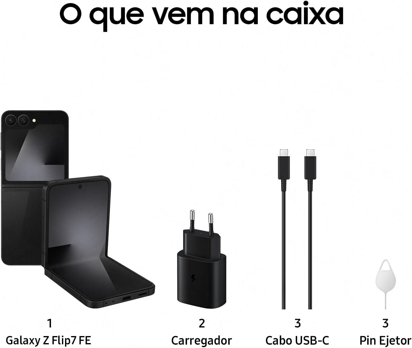 Samsung apresenta mais um lançamento da linha Galaxy Z. Um novo dobrável que combina estilo e tecnologia de ponta. O Galaxy Z Flip7 FE tem um design dobrável que se transforma em um smartphone compacto, elegante e conta com opções de cores para escolher a que mais combina com você: Preto e Branco Inteligência artificial: Gemini Live O Gemini e Gemini Live, ferramentas de AI do Google, estão presentes no seu Galaxy Z Flip7 FE: – Gemini Live com câmera: aponte sua câmera para qualquer coisa e converse naturalmente para ter respostas instantâneas sobre o que está sendo capturado. – Gemini Live com compartilhamento de tela: compartilhe o que você tem na tela e tenha ajuda imediatamente. E com a ação integrada entra aplicativos, você pode fazer múltiplas tarefas sem trocar de aplicativos. Tela Flex externa O Galaxy Z Flip7 FE agora traz o Now Bar diretamente na Tela Flex para você verificar e controlar facilmente as informações em tempo real do aplicativo que você está usando. E a tela principal Dynamic AMOLED 2X de 6,7” permite que você tenha uma experiência visual impressionante. FlexCam Capture fotos mais nítidas com a FlexCam, que conta com o ProVisual Engine de última geração, resolução aprimorada e auto zoom aprimorado. A sua câmera dupla de até 50MP permite que você tire lindas selfies mantendo cores e texturas naturais em diferentes ângulos utilizando a FlexCam. O Galaxy Z Flip7 FE garante diversas possibilidades para que as suas fotos e seus vídeos fiquem de outro nível, em qualquer condição de iluminação. Performance Seu processador Samsung Exynos 2400 (4 nm) oferece um desempenho rápido e eficiente, ideal para jogos, aplicativos e multitarefa. O Galaxy Z Flip7 FE te acompanha em todos os momentos com a sua bateria de longa duração, dia e noite sem precisar recarregar de 4.000 mAh. E quando precisar carregar, fique despreocupado quanto a isso, o Galaxy Z Flip7 FE suporta o carregamento super-rápido de até 25W. Tenha uma Experiência Galaxy mais segura e atualizada com o seu aparelho. O Galaxy Z Flip7 FE assegura até 7 atualizações de sistema operacional Android e até 7 anos de atualizações de segurança. Fora isso, a sua proteção é aprimorada com Samsung Knox, garantindo que dados confidenciais e sigilosos permaneçam seguros, e com Cadeado Galaxy, protegendo os seus dados e acessos a aplicativos por terceiros.